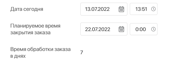 При вводе даты отгрузки на форме создания отображается количество дней, за которое заказ будет выполнен, с учётом рабочего календаря.